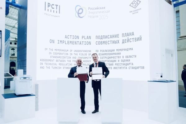 МОСКВА, 16 октября 2025 г. – План по реализации Меморандума о взаимопонимании между Росстандартом и Турецким институтом стандартов (TSE) был подписан руководителем Росстандарта Антоном Шалаевым и президентом Турецкого института стандартов Махмутом Шахином. Планом предусмотрено более двух десятков практических мероприятий по трём ключевым направлениям (стандартизация, оценка соответствия и профессиональная переподготовка). В частности, российская сторона предоставляет турецкой доступ к Федеральному информационному фонду стандартов Российской Федерации. Данный механизм позволит создать беспрепятственное прямое применение российских стандартов на территории Турецкой Республики, что существенно упрощает реализацию совместных проектов. При этом опыт прямого применения российских стандартов в Турции уже есть – в ходе проекта строительства атомной электростанции «Аккую» составлен перечень взаимно применяемых российских ГОСТов.